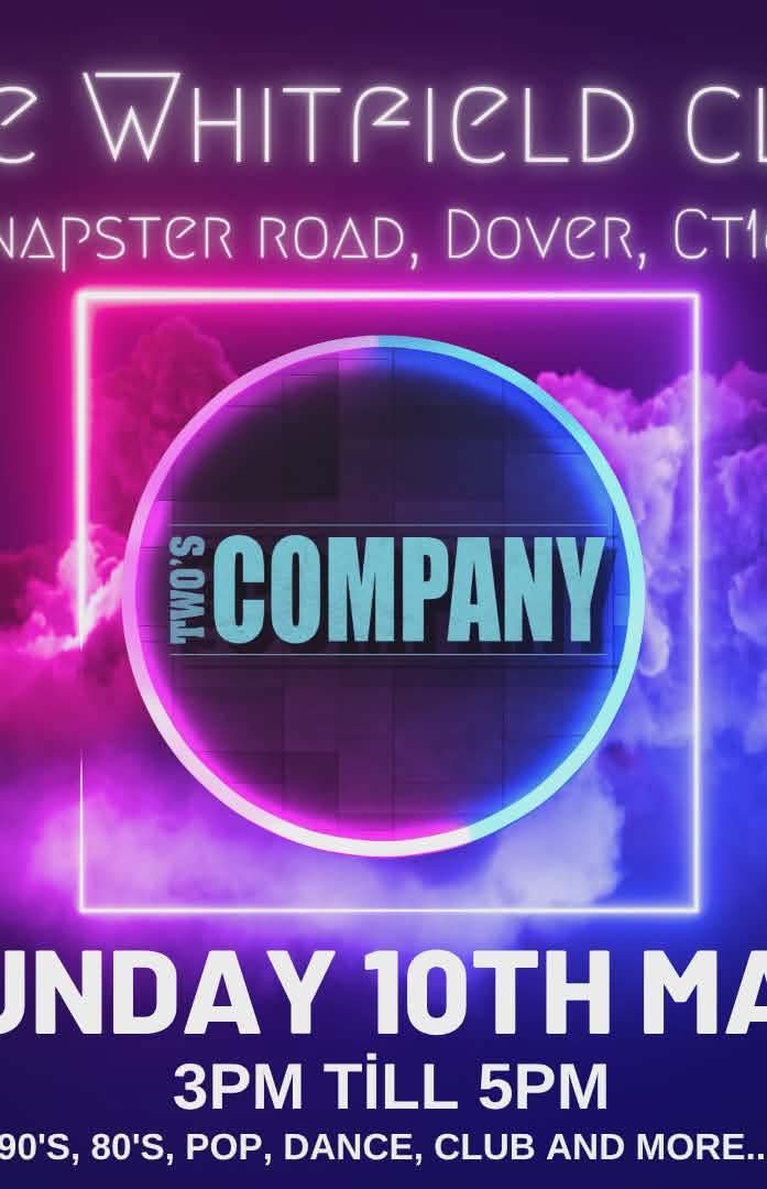 Get ready for a great night of live music as we welcome Two’s Company to the Whitfield Club on 10th May 2026 at 2-4.